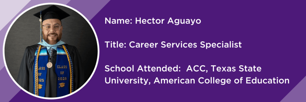 Tell us about your higher education experience: I started my higher education journey at ACC, and later transferred to Texas State University where I studied Spanish Linguistics. Attending ACC first gave me the foundation I needed, and transferring allowed me to build on that foundation to pursue my passion for language and culture.